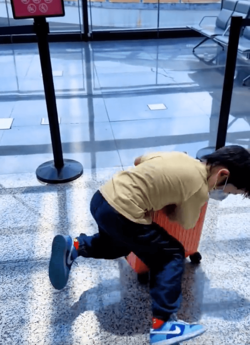 黃曉明玩轉(zhuǎn)行李箱。