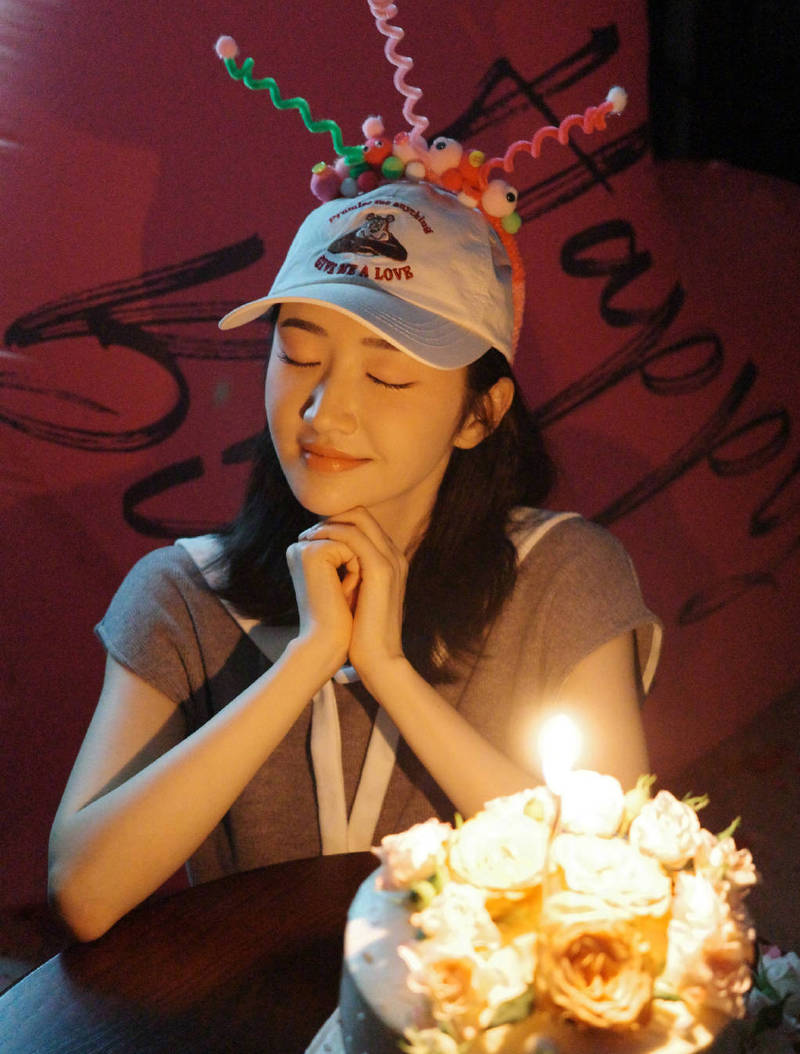 景甜曬35歲慶生照片 對蠟燭許愿溫柔甜美