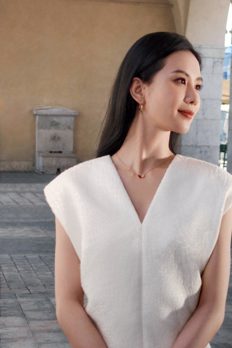劉詩詩發(fā)絲飄逸,優(yōu)雅端莊。