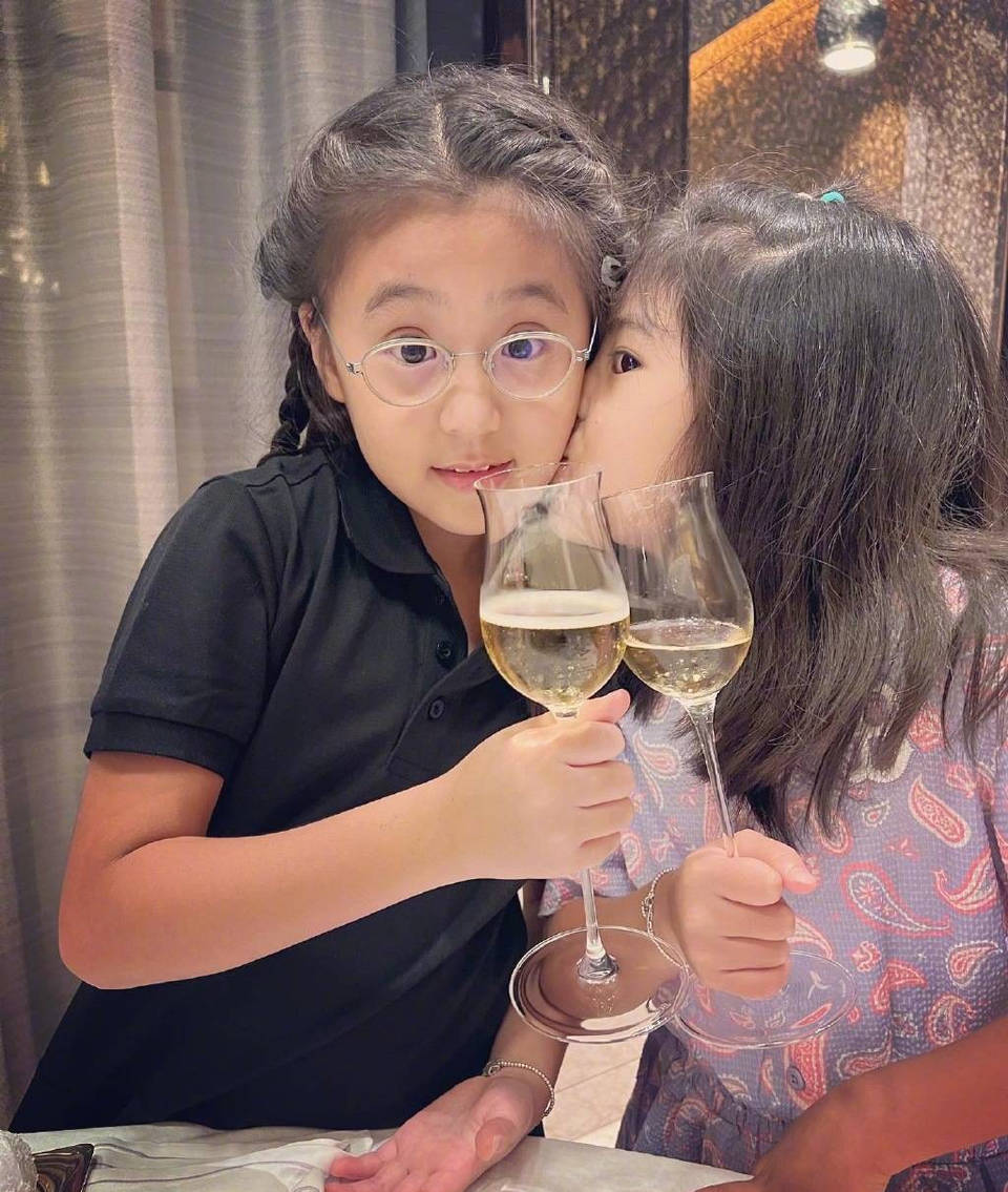 咘咘和妹妹干杯,妹妹親吻姐姐臉頰。