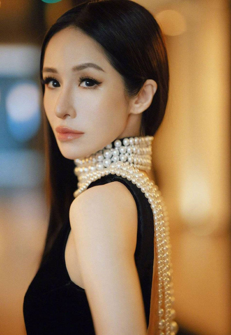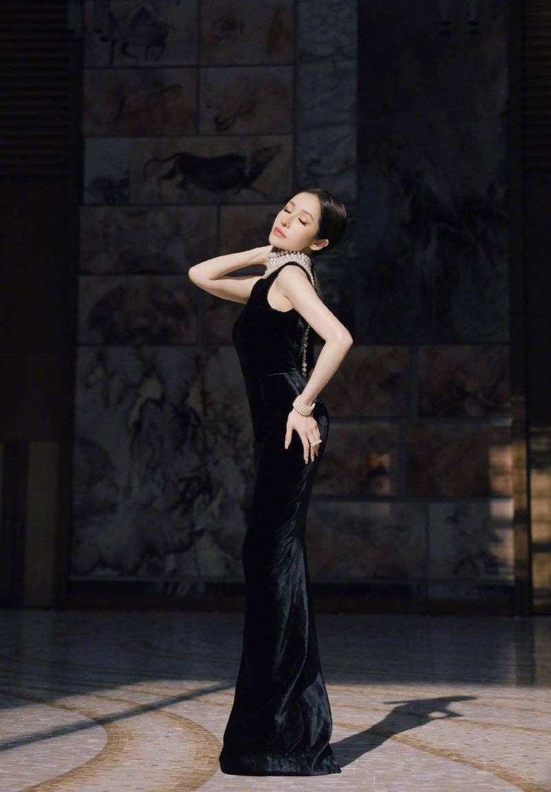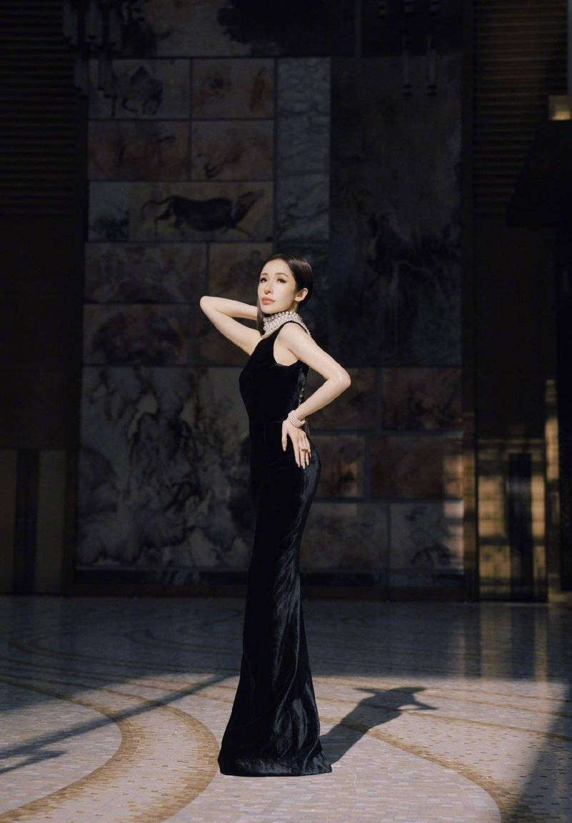 蕭亞軒穿黑色無袖長(zhǎng)裙氣質(zhì)高貴優(yōu)雅。