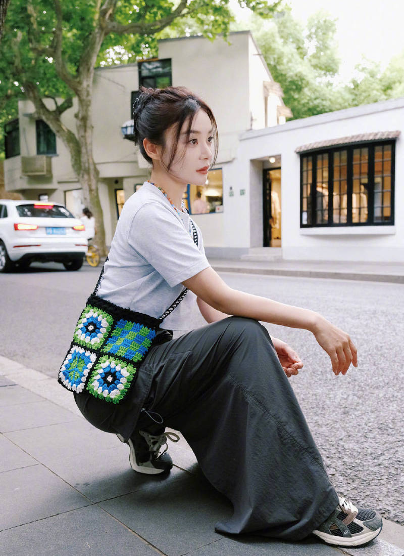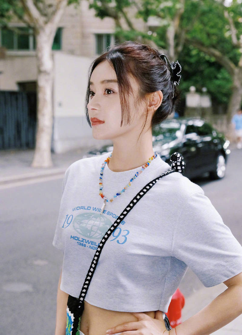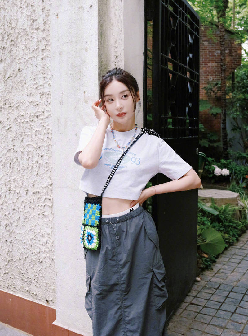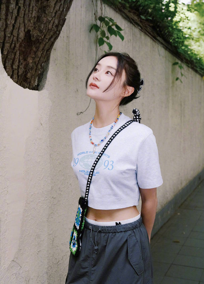 袁姍姍分享夏日街拍 白T搭配闊腿褲清新活力