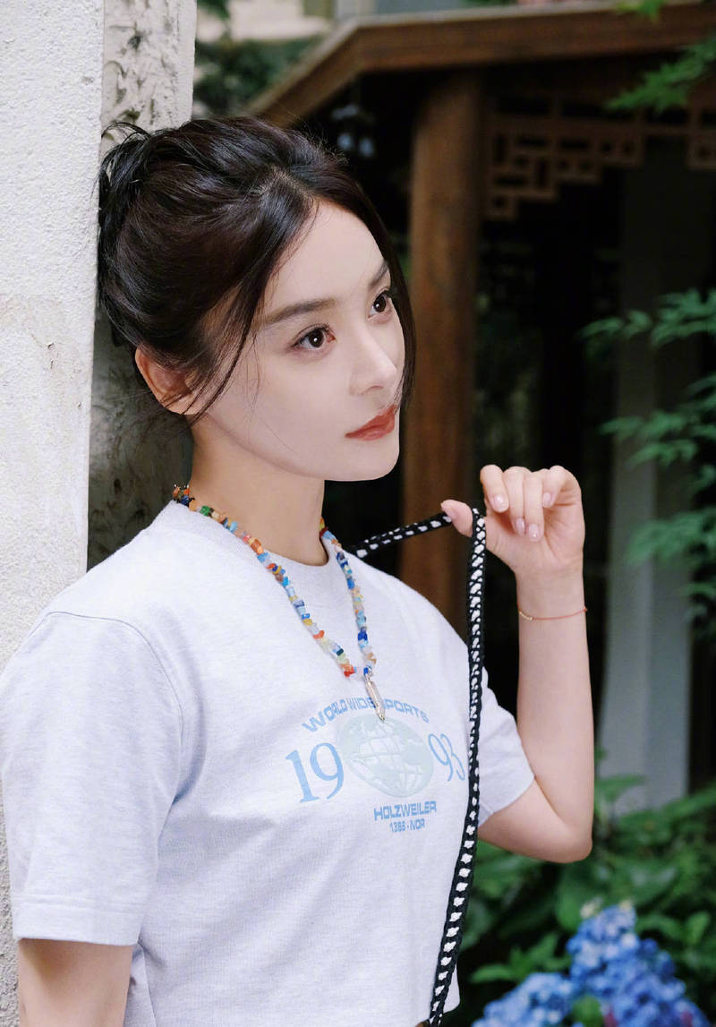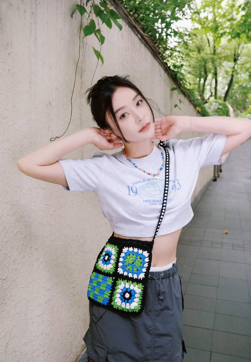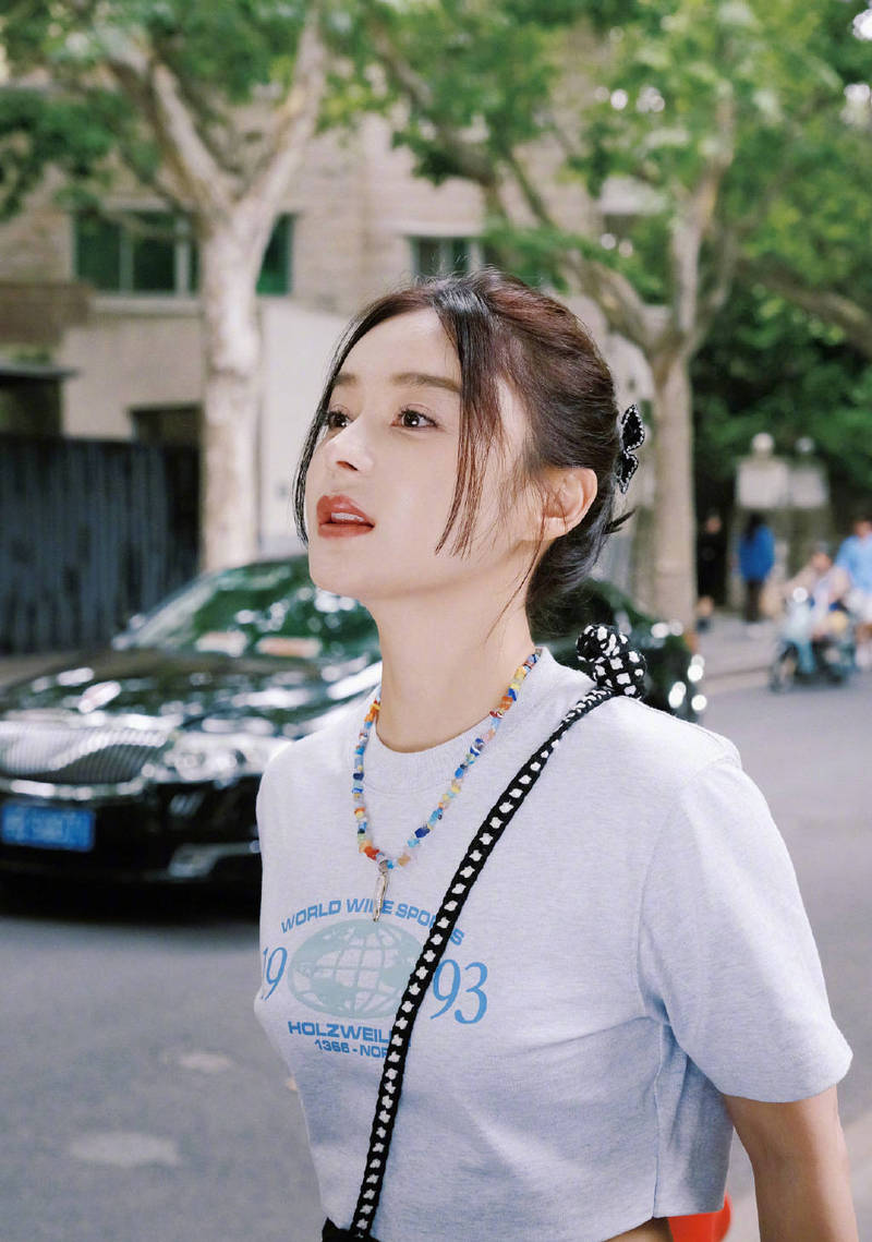 袁姍姍分享夏日街拍 白T搭配闊腿褲清新活力