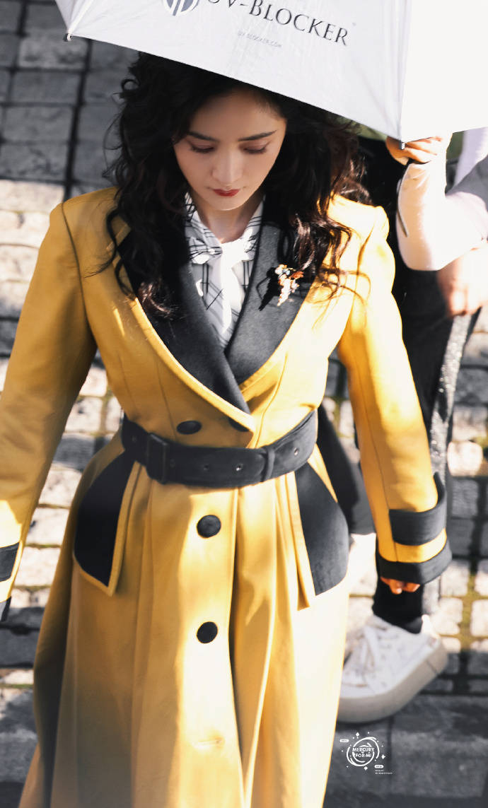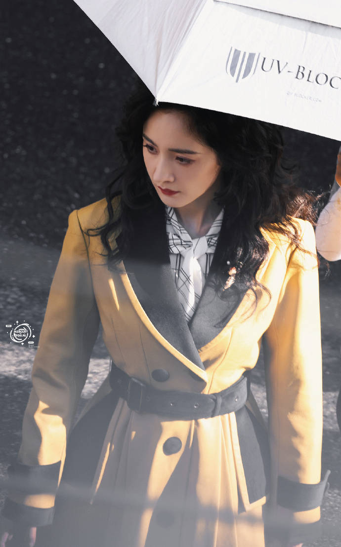 楊冪身穿風衣摩登又優(yōu)雅。