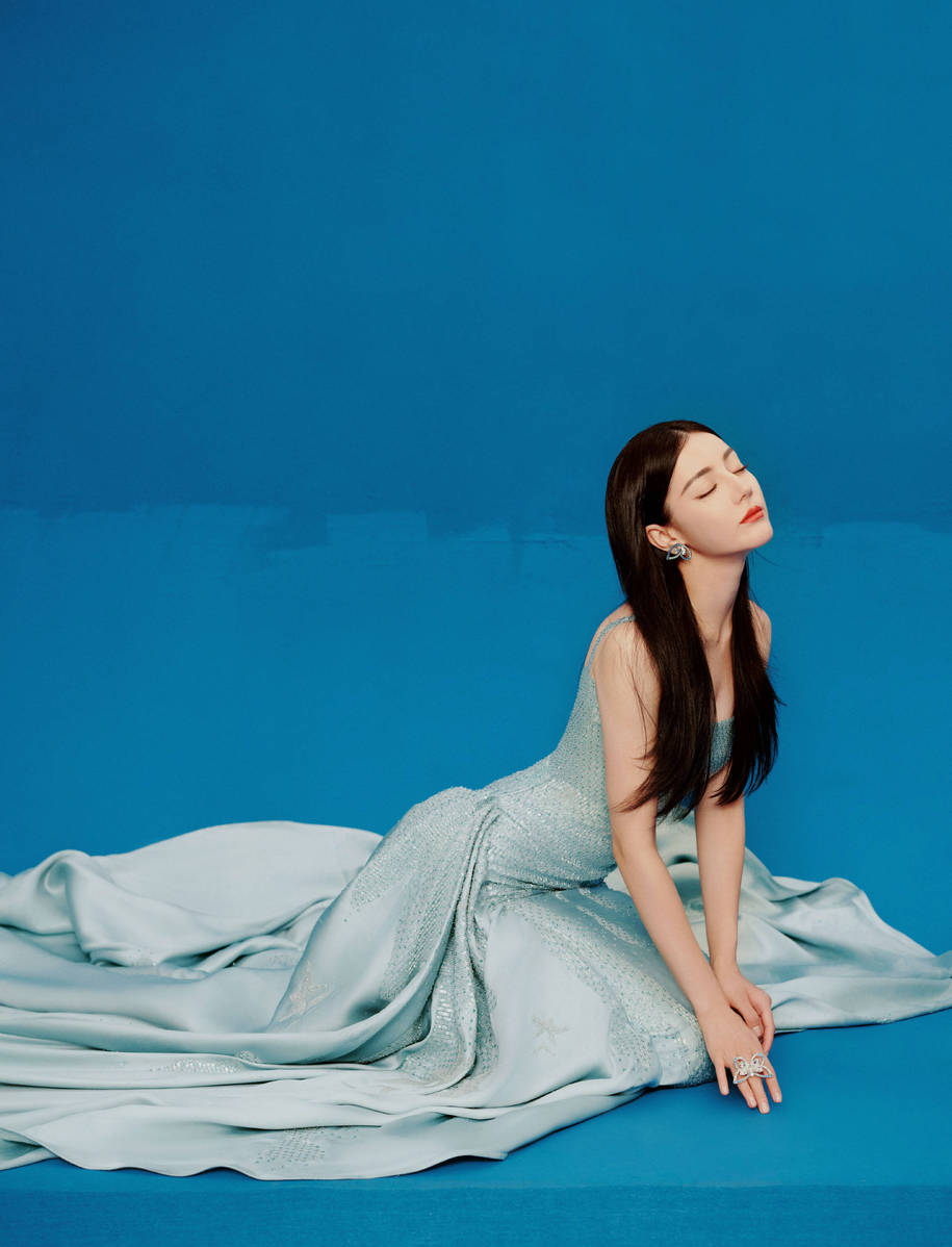 淪陷在藍色的意韻中,朦朧光影間,迪麗熱巴身著一襲藍色禮裙,眉眼繾綣,讓優(yōu)雅在此刻蔓延。