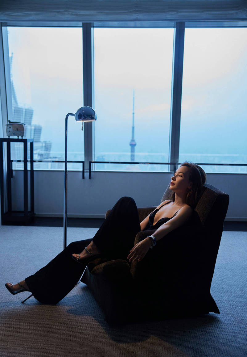 盧靖姍穿深V吊帶灑脫又性感 高跟鞋闊腿褲颯爽干練
