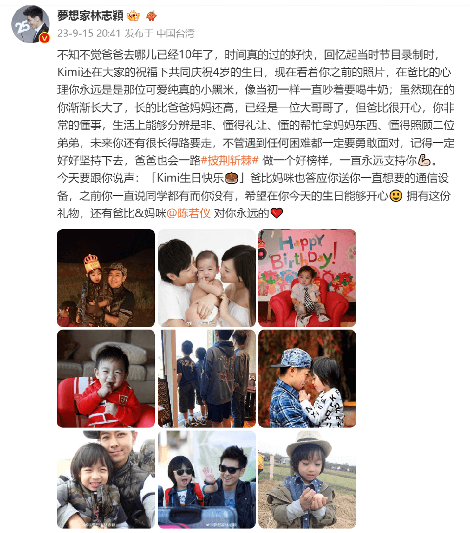 不知不覺爸爸去哪兒已經(jīng)10年了,時(shí)間真的過的好快,回憶起當(dāng)時(shí)節(jié)目錄制時(shí),Kimi還在大家的祝福下共同慶祝4歲的生日,現(xiàn)在看著你之前的照片,在爸比的心理你永遠(yuǎn)是是那位可愛純真的小黑米,像當(dāng)初一樣一直吵著要喝牛奶;雖然現(xiàn)在的你漸漸長大了,長的比爸爸媽媽還高,已經(jīng)是一位大哥哥了,但爸比很開心,你非常的懂事,生活上能夠分辨是非、懂得禮讓、懂的幫忙拿媽媽東西、懂得照顧二位弟弟,未來你還有很長得路要走,不管遇到任何困難都一定要勇敢面對(duì),記得一定好好堅(jiān)持下去,爸爸也會(huì)一路#披荊斬棘# 做一個(gè)好榜樣,一直永遠(yuǎn)支持你。