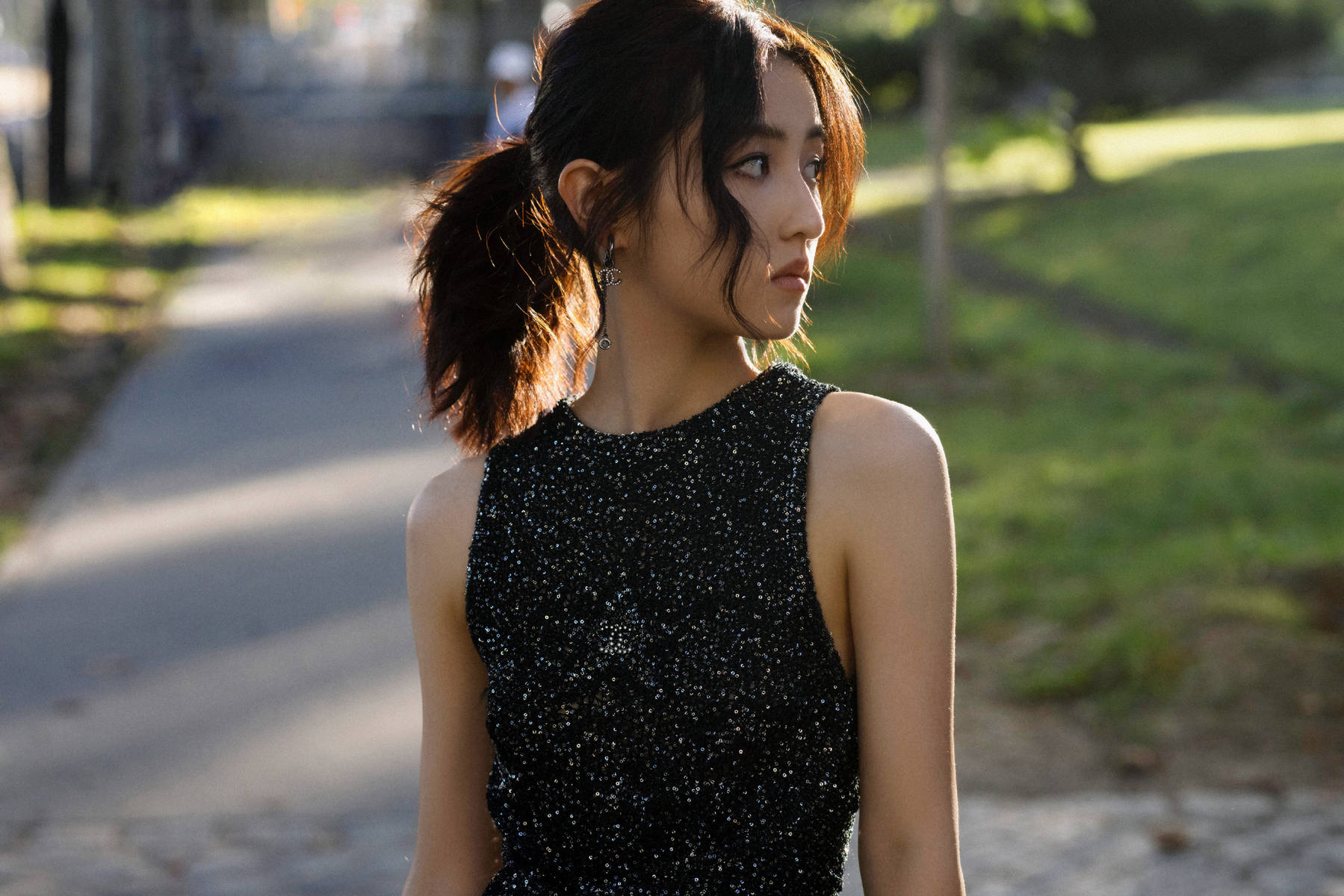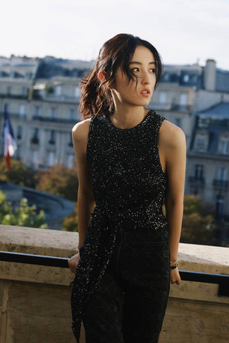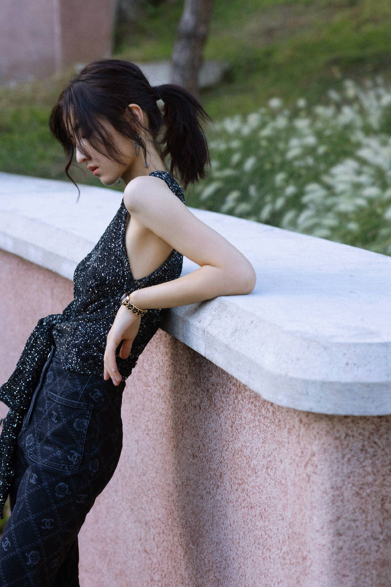 張子楓穿亮片背心青春靚麗 陽臺上玩轉(zhuǎn)法式慵懶風
