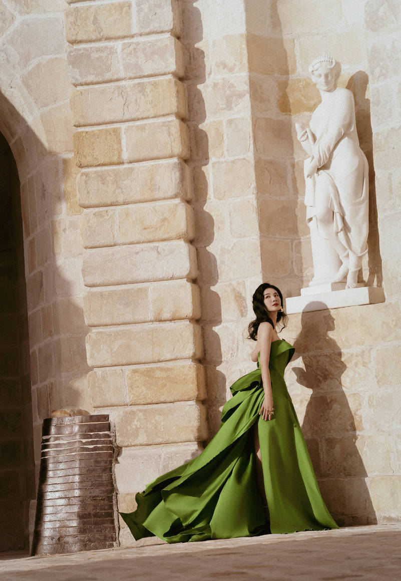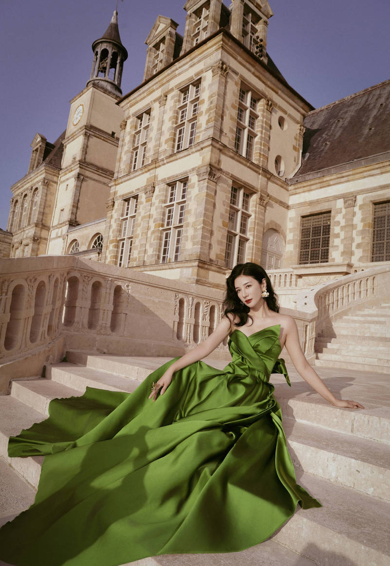 10月5日,黃奕(經(jīng)紀公司)的一組靜謐古堡寫真大片釋出,她身穿綠色抹胸禮裙置身古堡,綠裙迤邐,明媚張揚。