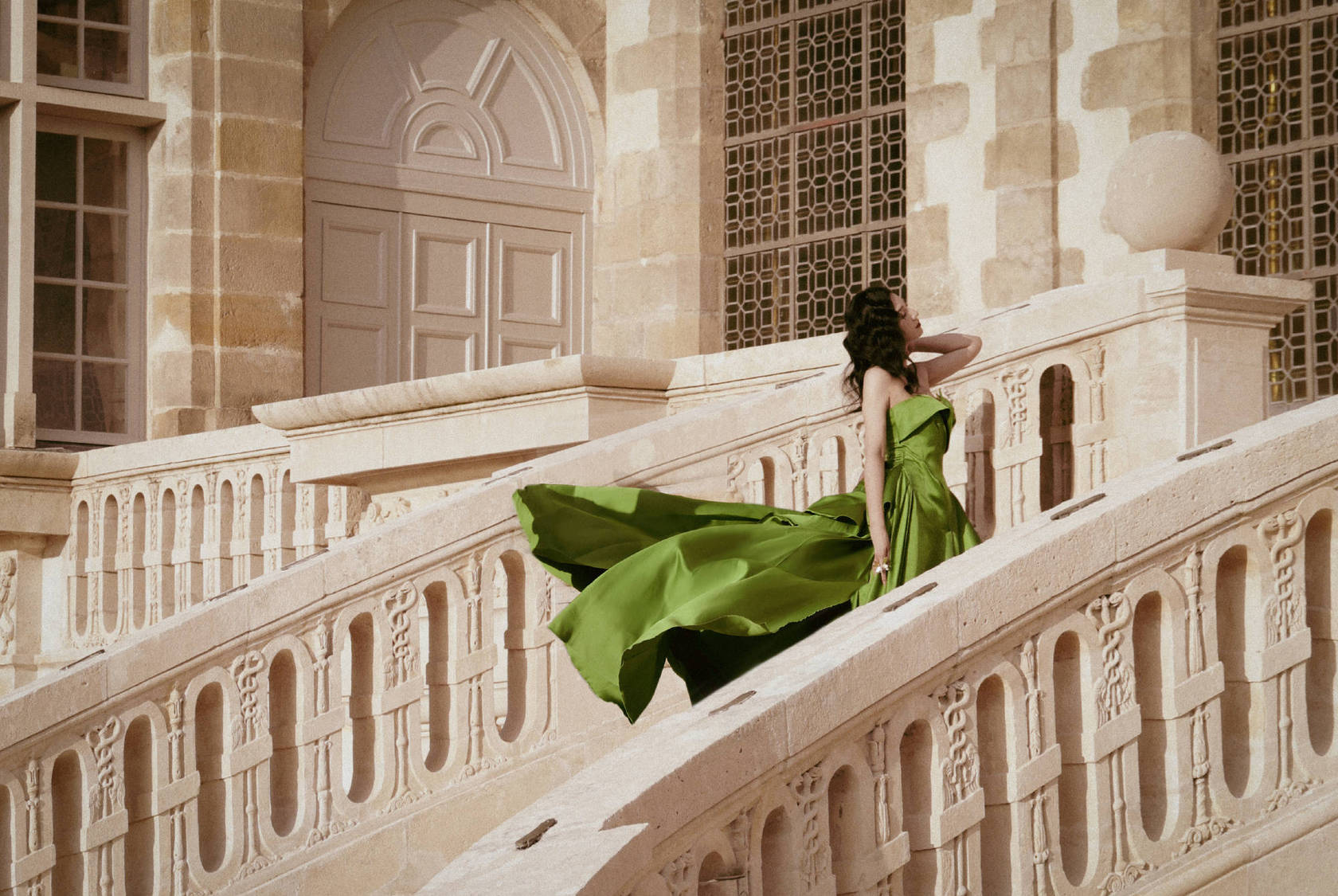 黃奕拍攝靜謐古堡寫真大片 穿綠色抹胸裙明媚動人