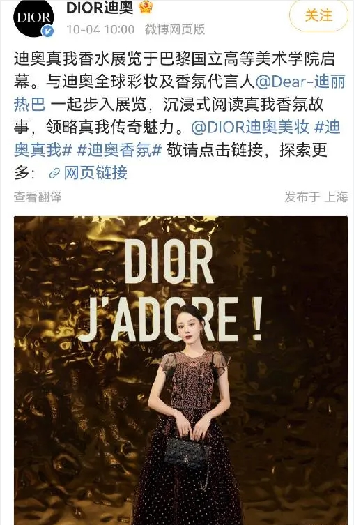 近日!DIOR迪奧官方官宣迪麗熱巴(明星經(jīng)紀公司)升任DIOR迪奧全球彩妝及香氛代言人。