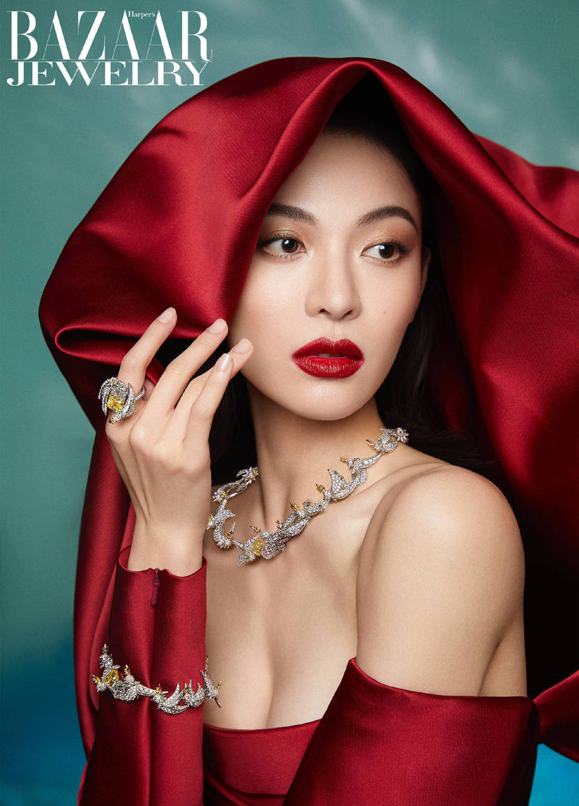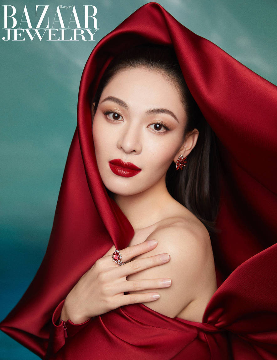10月11日,鐘楚曦(明星經(jīng)紀公司)珠寶封面大片釋出,抹胸禮服大秀美胸,身材纖細,高冷矜貴。