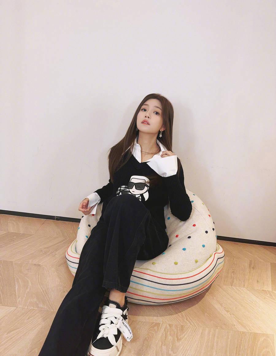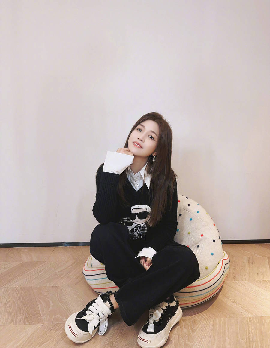 陳妍希慵懶的倚靠在墊子上,肆意灑脫。