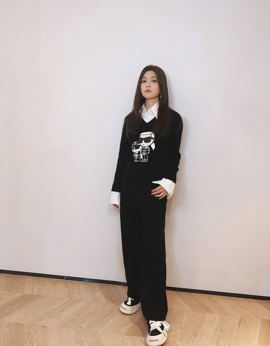 陳妍希曬宅家照片松弛感拉滿 黑白色穿搭又甜又酷