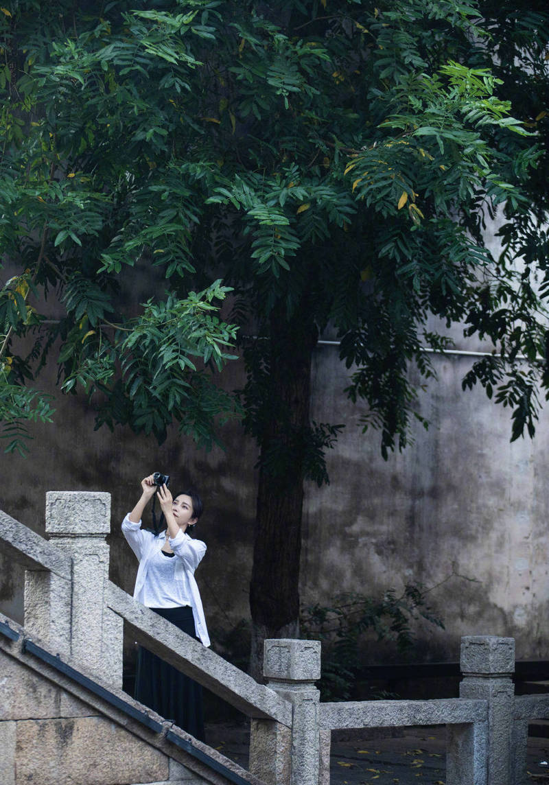 10月26日,李冰冰曬出一組古鎮(zhèn)隨拍,身穿白色上衣,頭發(fā)低挽,看起來悠然愜意。