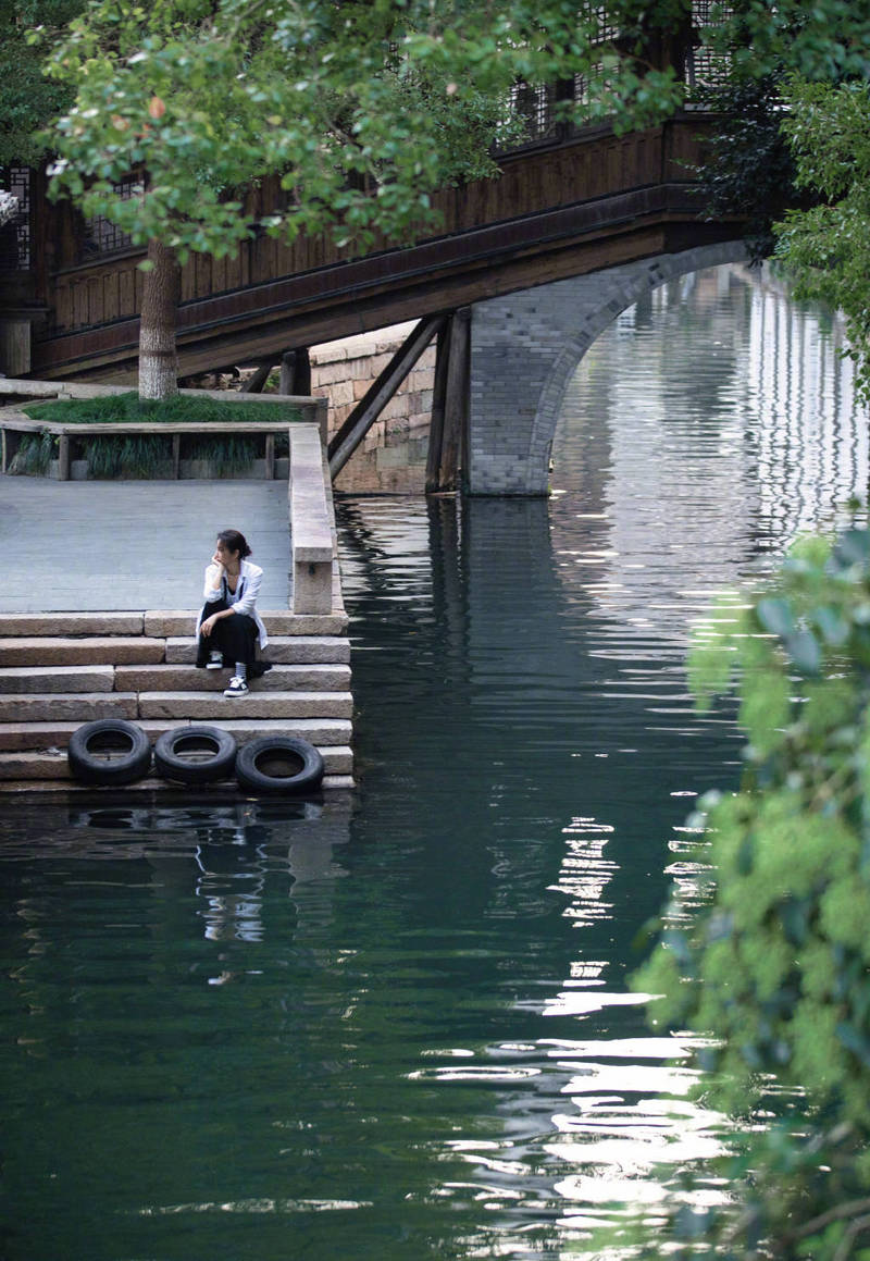 李冰冰坐在岸邊眺望遠(yuǎn)方。
