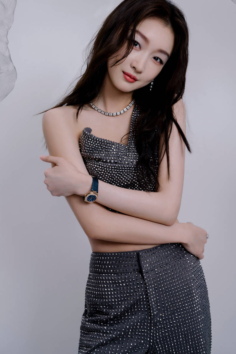 周冬雨穿亮片吊帶上衣摩登個性 秀美背小蠻腰吸睛