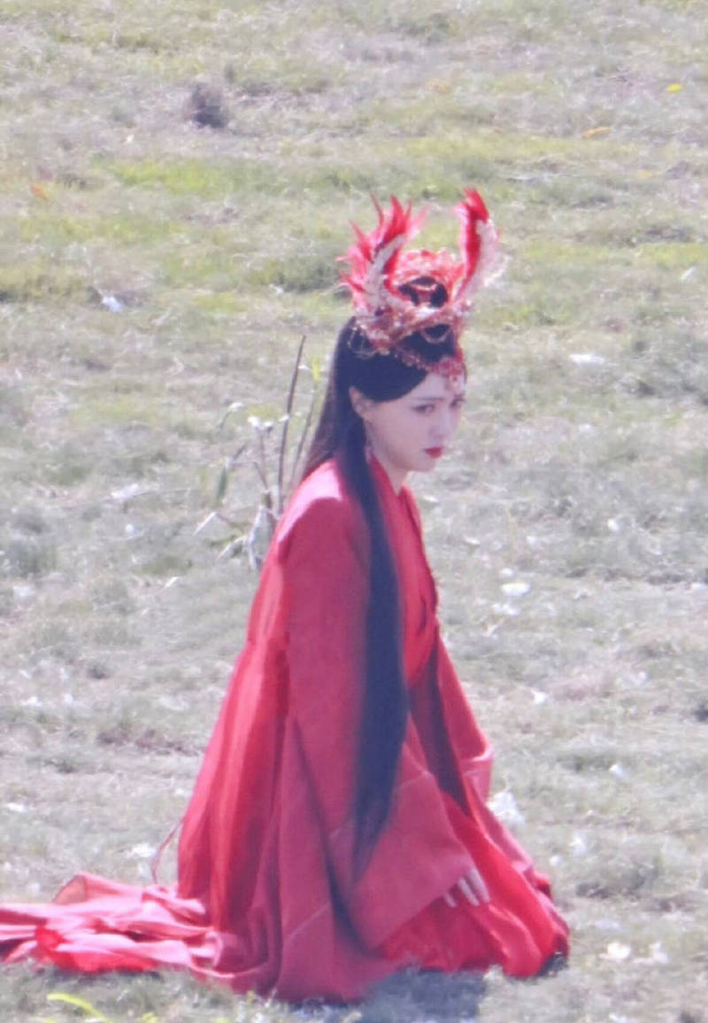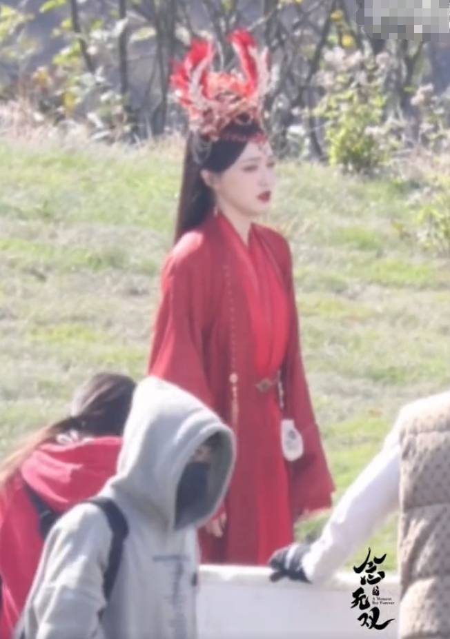唐嫣新劇大紅婚服路透曝光 明艷嬌嫩肌膚白皙水靈