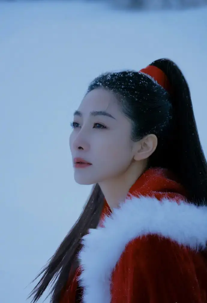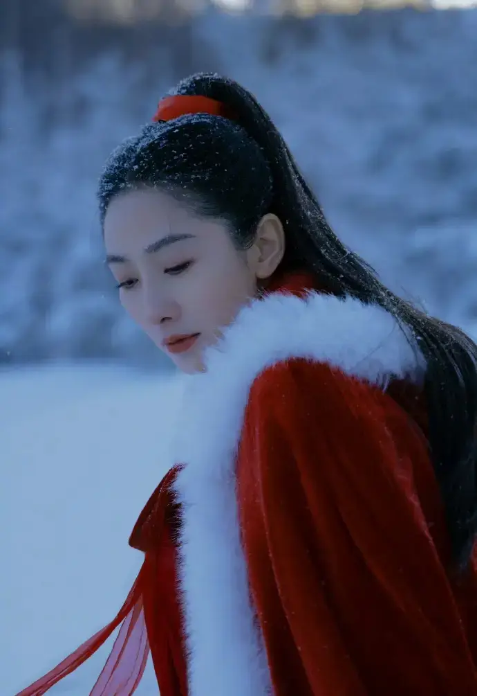 冰天雪地的一襲紅衣,寒冷的溫度也抵擋不住陶昕然的美。