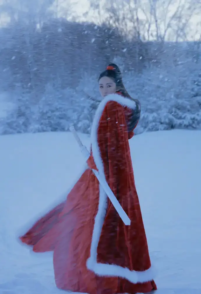 陶昕然雪地黑發(fā)紅衣古裝照 手持佩劍女俠氣質(zhì)滿滿