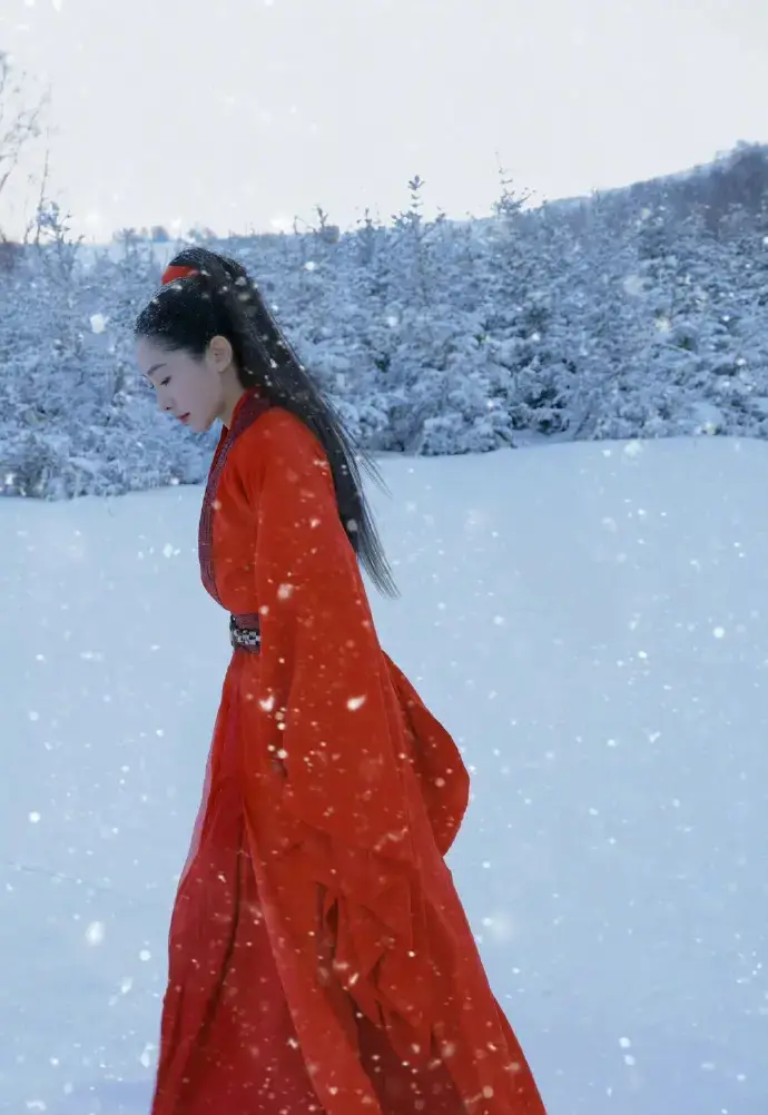 1月21日,演員陶昕然曬出一組雪地紅衣古裝照,并配文“在零下25度的崇禮拍大片……”。