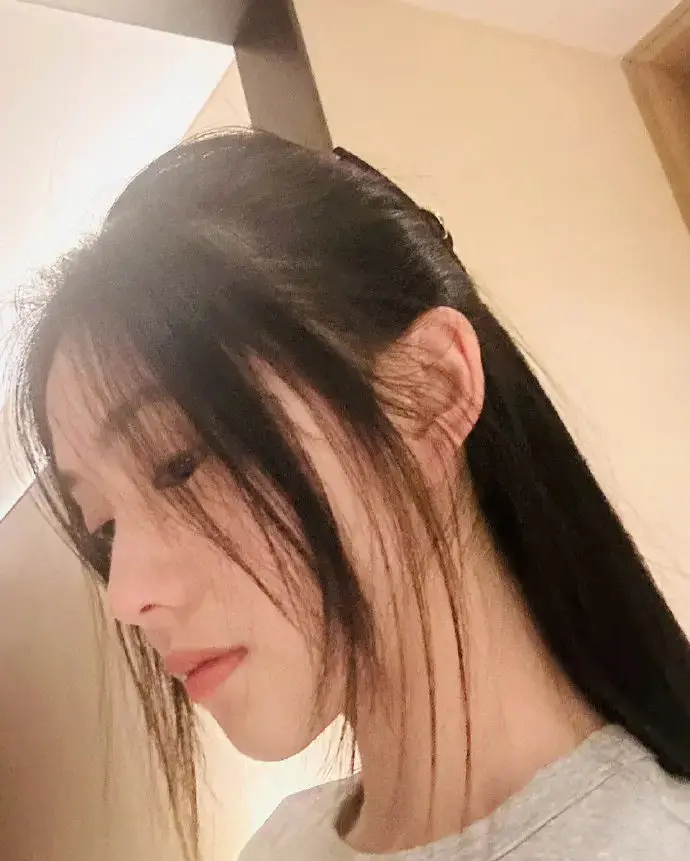 劉浩存對(duì)鏡自拍秀鎖骨。