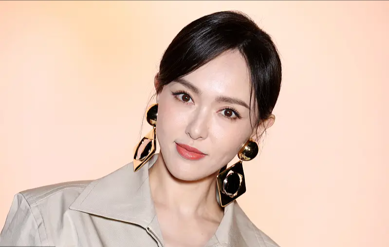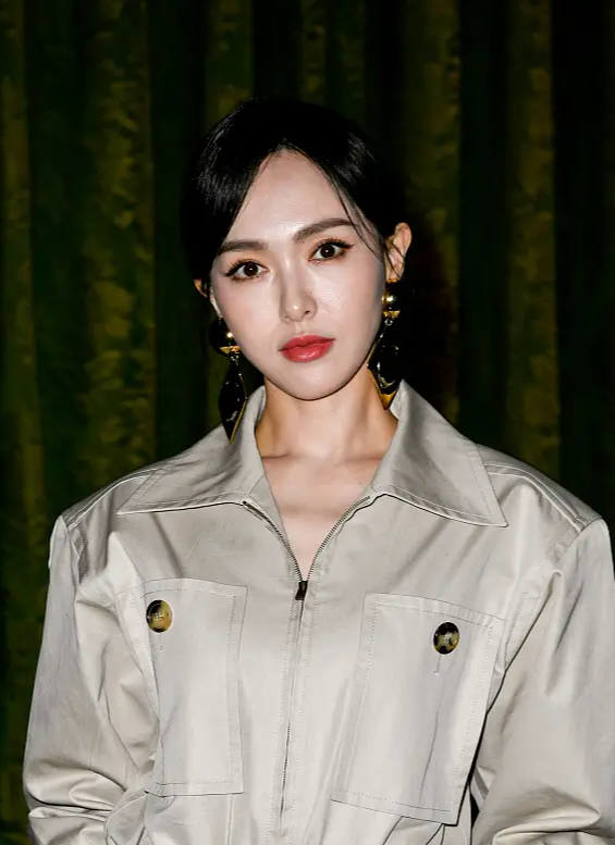 搭配巨型耳飾點綴唐嫣一整套穿搭。