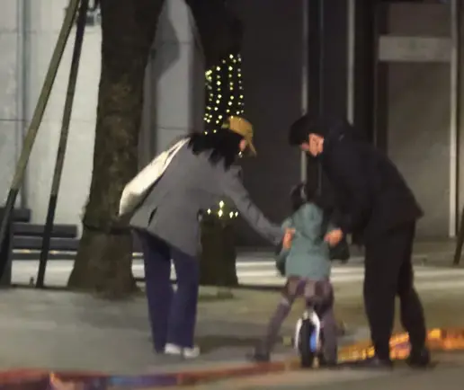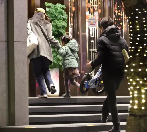 趙又廷拿起小車,高圓圓拉著女兒的手離開。