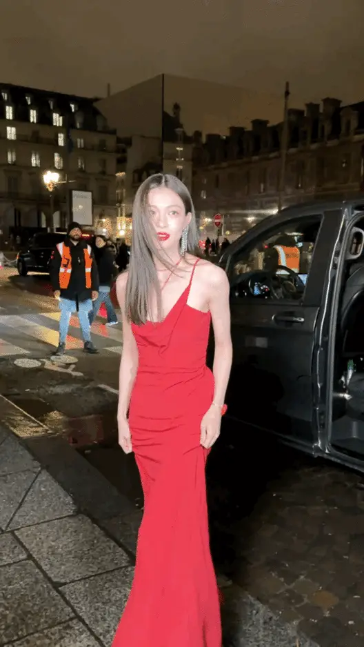 3月1日,鐘楚曦(明星經(jīng)紀(jì)公司)紅裙造型現(xiàn)身時(shí)裝周,照片里的她笑容明媚,風(fēng)情萬種。