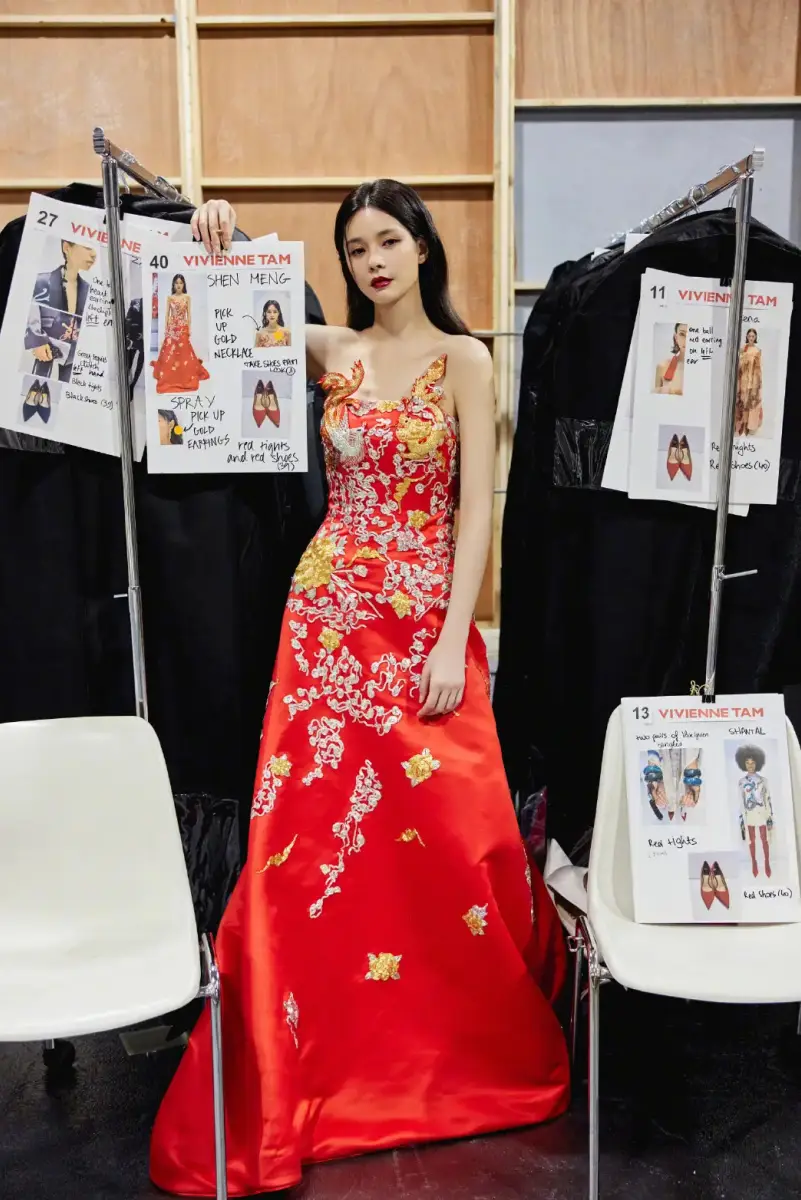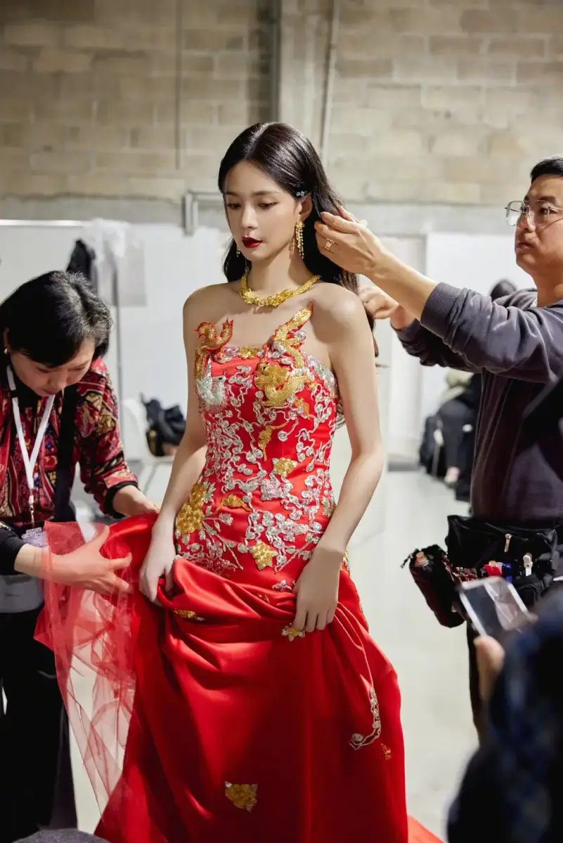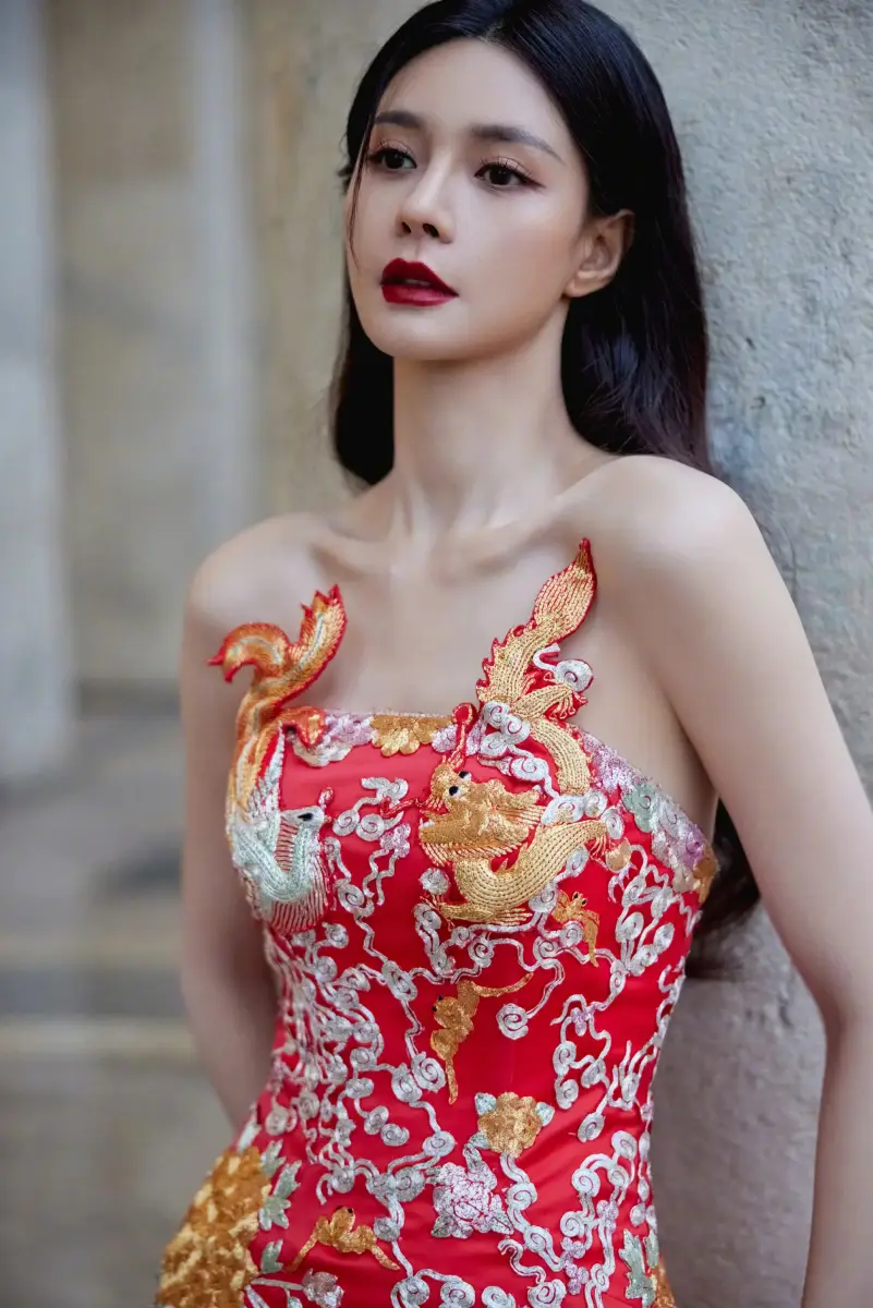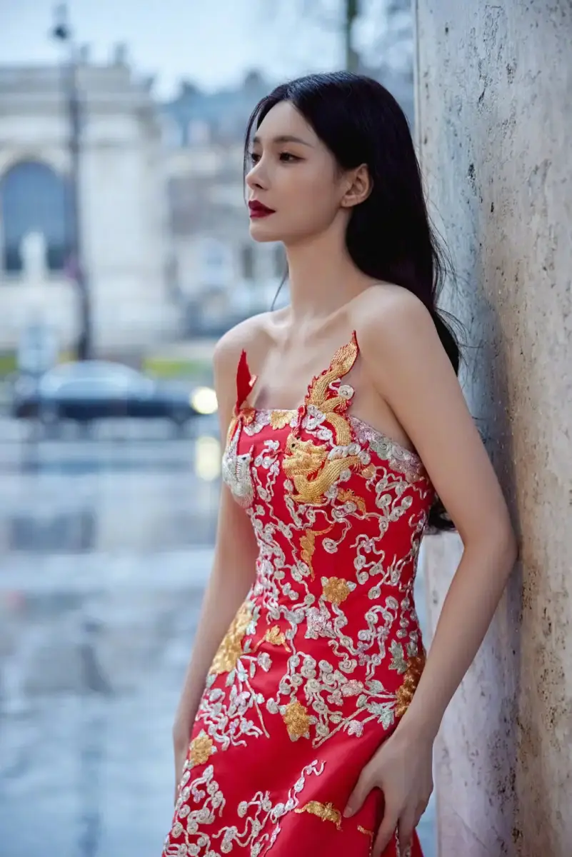 沈夢(mèng)辰一襲龍紋紅色旗袍 儀態(tài)大方彰顯新中式魅力