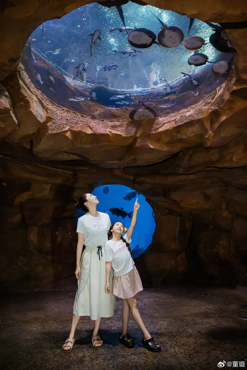 董璇母女一起欣賞水族館的美麗。