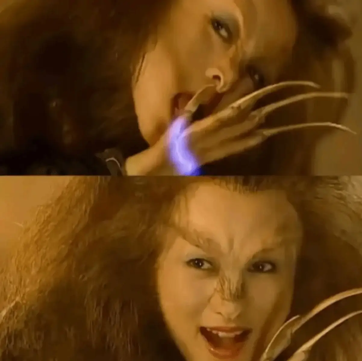 貓妖妙妙變身后爪子超長,格外恐怖。