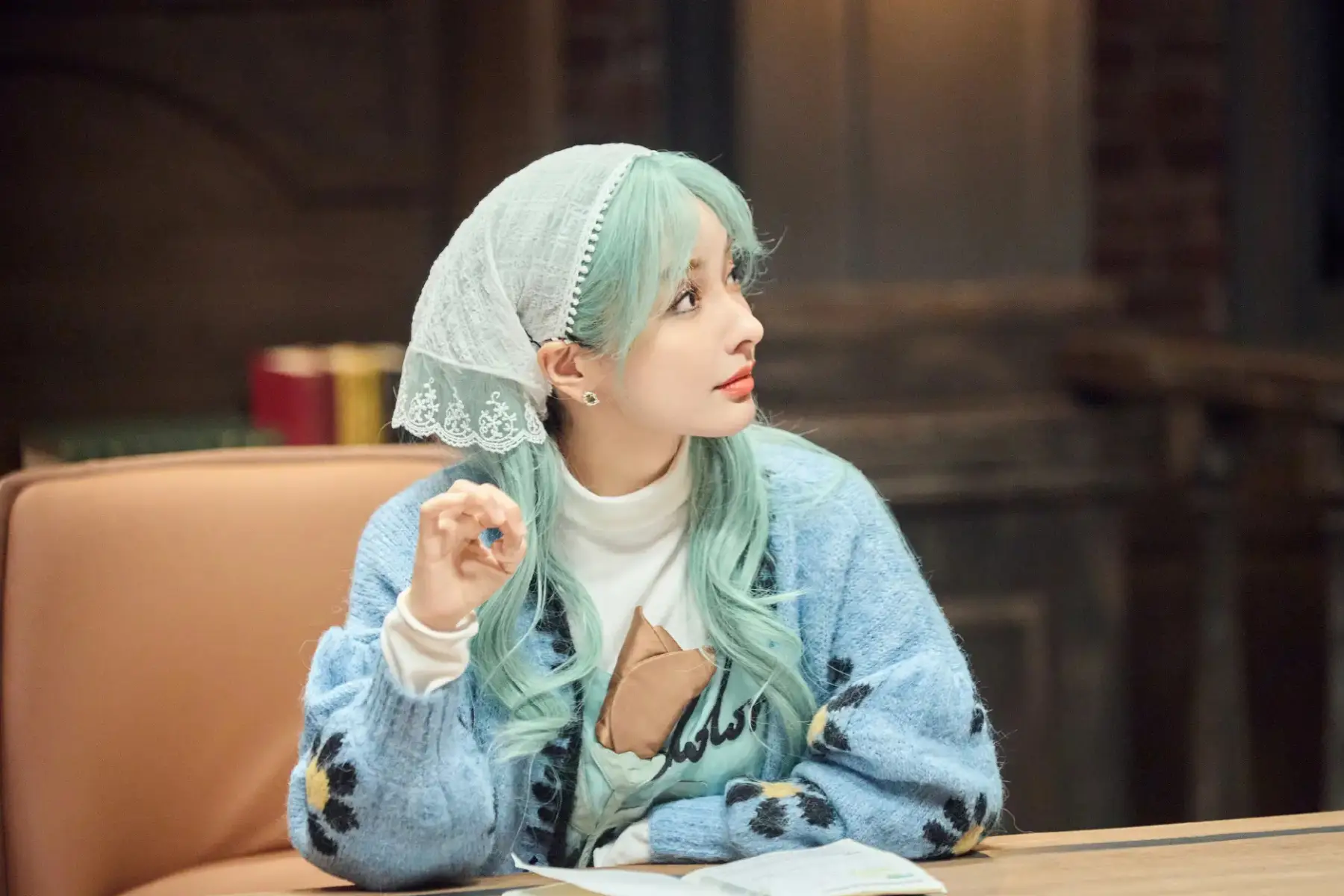 吳昕綠發(fā)精靈造型好美!手捧鮮花戴蕾絲頭巾超迷人
