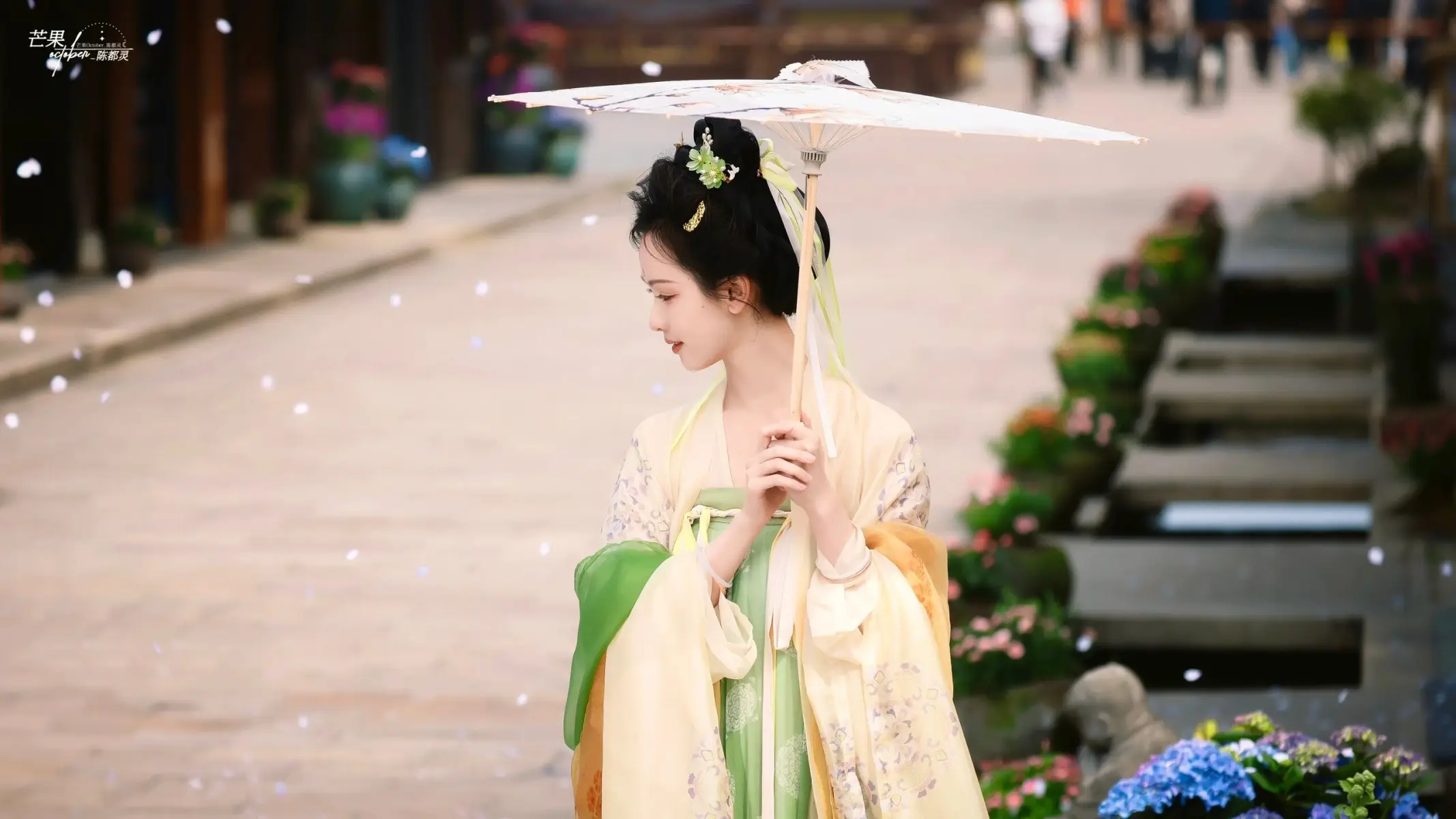 陳都靈穿嫩黃色唐制漢服 柔美明媚似花神降臨