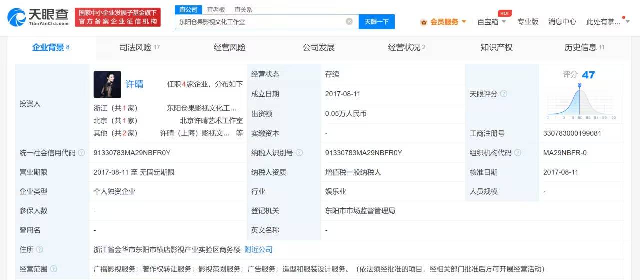 天眼查App顯示,近日,東陽倉果影視文化工作室、東陽新視覺影視文化有限公司新增一則被執(zhí)行人信息,執(zhí)行標(biāo)的624萬余元,涉及合同糾紛案件,執(zhí)行法院為蘇州市中級人民法院。...