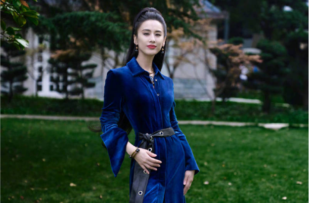 近日,黃圣依(明星經(jīng)紀公司)曬出一組室外草地寫真。黃圣依身穿藍色冰染天鵝絨長裙,高馬尾利落帥氣,烈焰紅唇,女王氣場十足