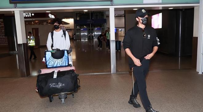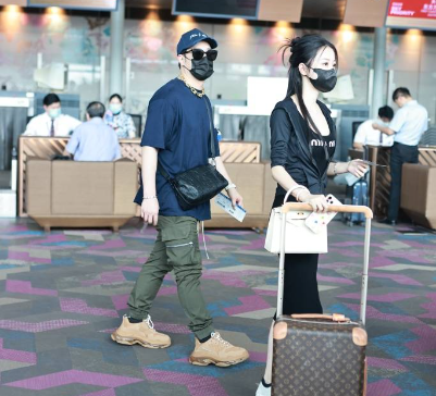 潘瑋柏夫婦現(xiàn)身機(jī)場(chǎng) 妻子推行李男方只顧耍帥