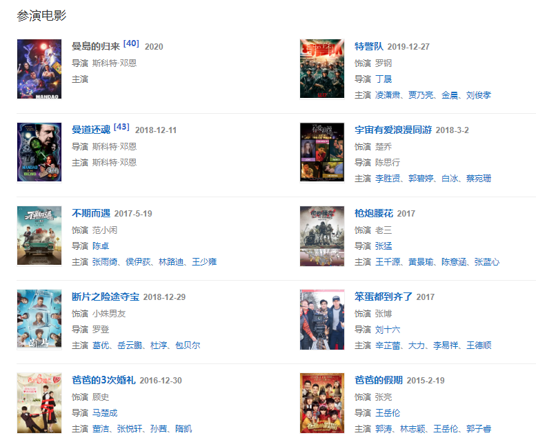 代表作品:我不是男神、爸爸的3次婚禮、爸爸去哪兒大電影、爸爸的假期