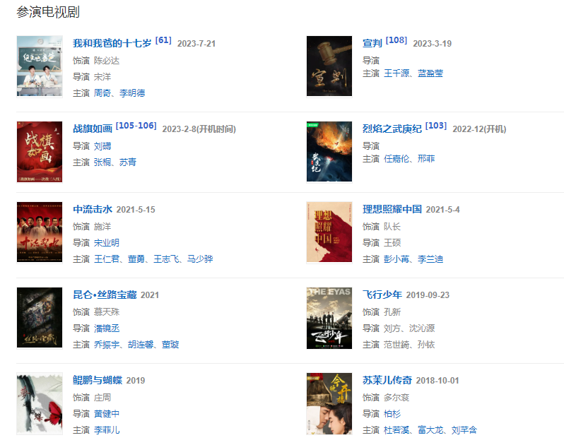 代表作品:隋唐演義、傾世皇妃、新蕭十一郎、小樓又東風、媽祖、武當、秦王李世民、水滸傳