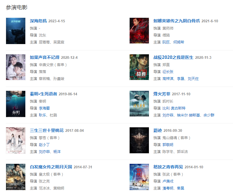 20191月,確定搭檔李菲兒出演史詩性歷史劇《鯤鵬與蝴蝶》;125日,作為“聲音大咖”錄制的湖南衛(wèi)視原創(chuàng)聲音競演秀節(jié)目《聲臨其境第二季》播出。