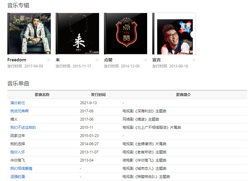 代表作品:我們不該這樣的、你把我灌醉、爸爸、夢里的淚