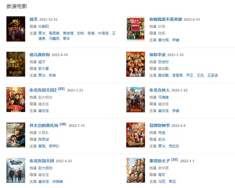 2022年1月7日,在播出的綜藝《冰雪正當(dāng)燃》里擔(dān)任節(jié)目嘉賓; 1月30日,參加《2022年遼寧衛(wèi)視春節(jié)聯(lián)歡晚會》。4月29日,參演的喜劇電影《保你平安》上映。4月22日,主演的喜劇電影《東北告別天團(tuán)》上映。