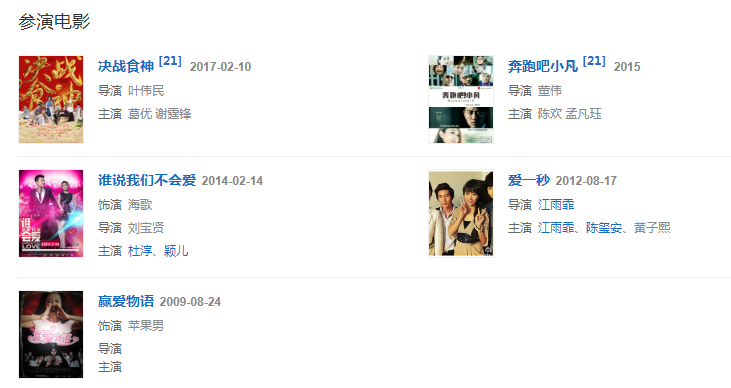 代表作品:老人與海、你的承諾、工體愛情故事、愛過、Dance Dance Dance、一個人的北京、我的回憶不是我的