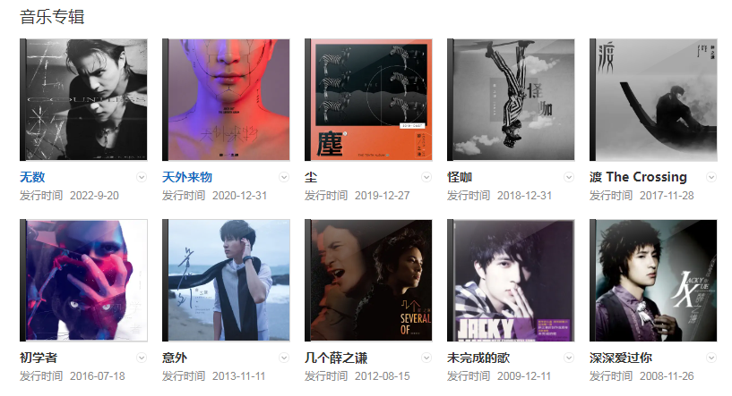 代表作品:認(rèn)真的雪、演員、丑八怪、紳士、意外、你還要我怎樣、剛剛好、幾個你、我好像在哪見過你、渡、初學(xué)者、怪咖、一半、動物世界、方圓幾里、深深愛過你、慢半拍、天外來物