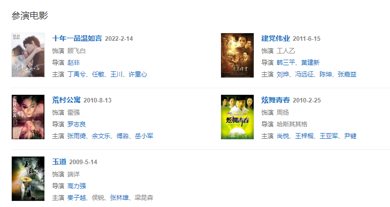 代表作品:一代梟雄、那年花開月正圓、親愛的,熱愛的、三十而已、鬢邊不是海棠紅、驪歌行、千古玦塵、愛的二八定律