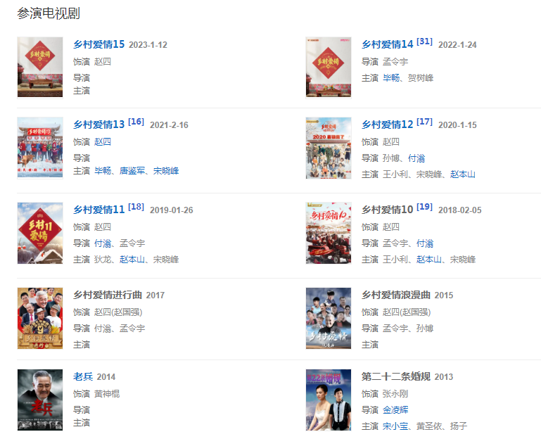 2013年,參加遼寧衛(wèi)視春晚與趙海燕、田娃表演小品《中獎(jiǎng)了》,2013年3月,在《第22條婚規(guī)》中,他在該劇中變身高知,飾演一位退休報(bào)社主編張永剛。同年,在農(nóng)村輕喜劇第六部《鄉(xiāng)村愛情變奏曲》、第七部《鄉(xiāng)村愛情圓舞曲》中飾演“趙四”。