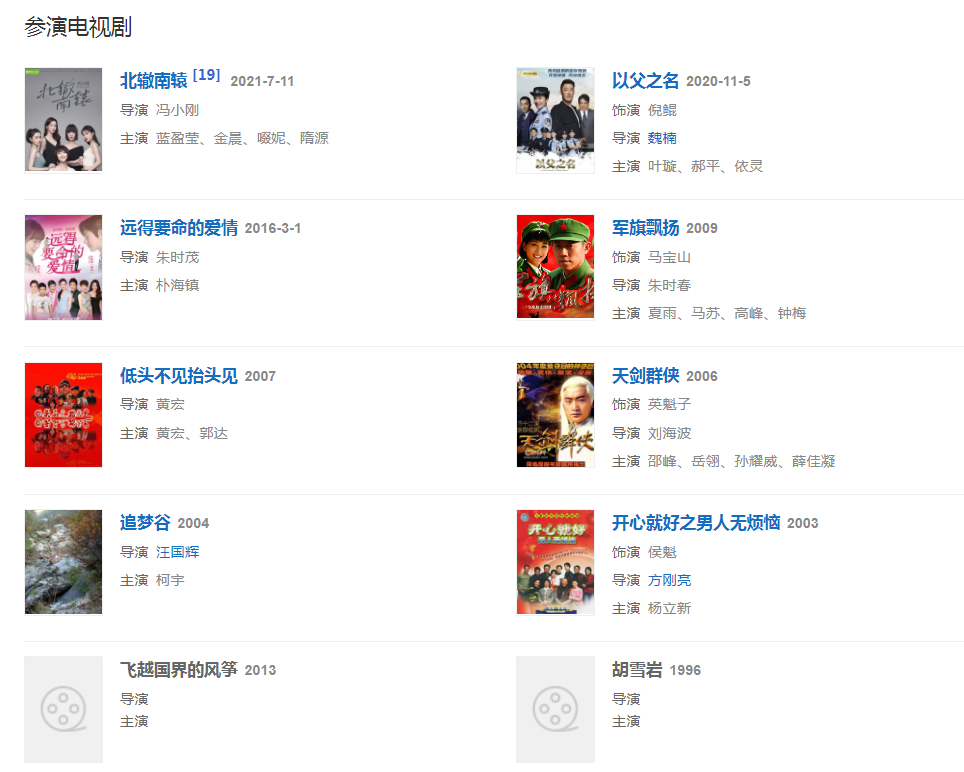 代表作品:牧馬人、道是無情勝有情、吃面條、主角與配角、警察與小偷