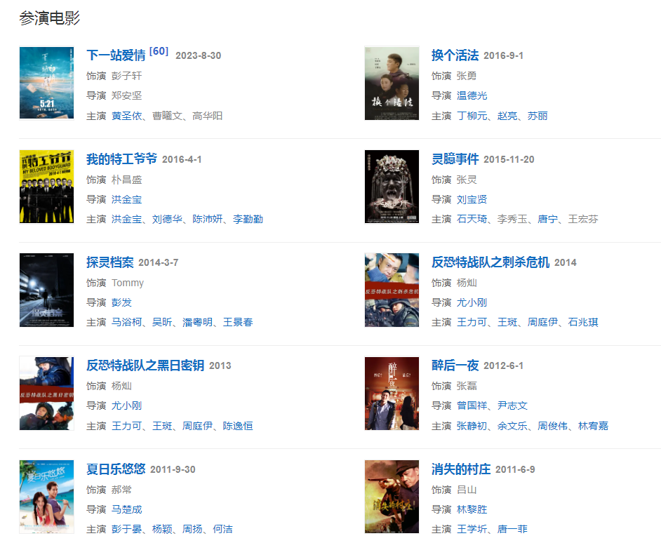 2010年與姚晨主演愛情片《搖擺de婚約》,與張靜初主演短片《愛在微博蔓延時》。