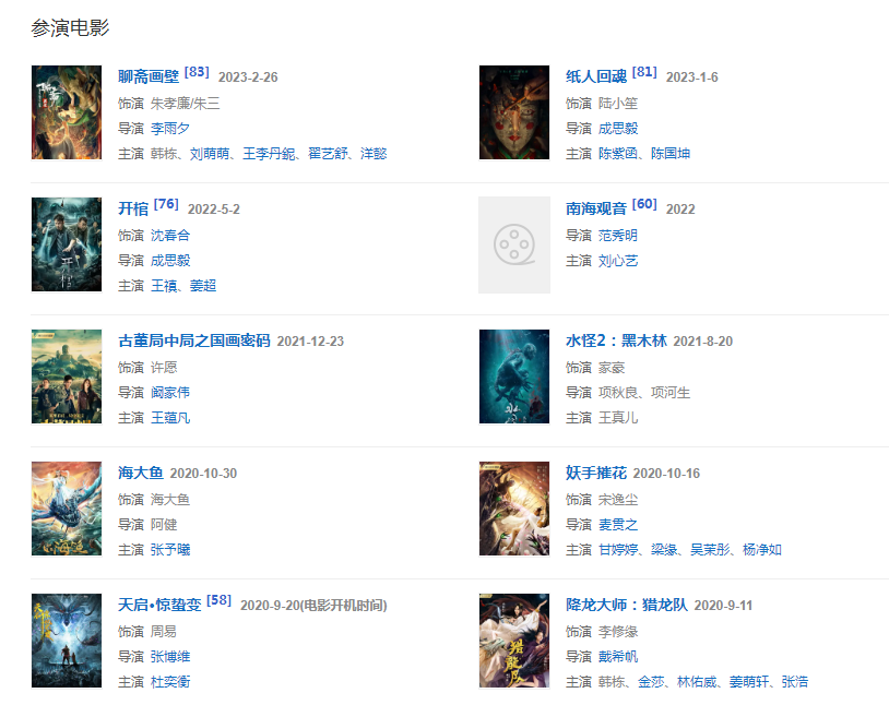 2022年5月2日,韓棟主演的《開棺》在騰訊視頻、優(yōu)酷雙平臺全網(wǎng)播出,在劇中飾演警察沈春合;5月2日,主演的偵破奇案劇《拆案2》播出 。