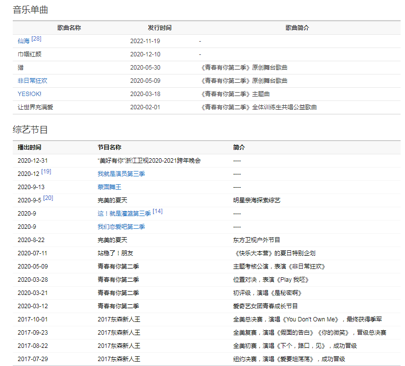 2021年2月10日,參加?xùn)|方衛(wèi)視《新春潮樂會(huì)》;4月3日,參加的音樂廠牌對(duì)抗秀節(jié)目《金曲青春》播出;12月4日,官宣成為女子唱跳組合NAME成員。